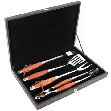 Utensilios Churrasco 04 Peças Com caixa Madeira