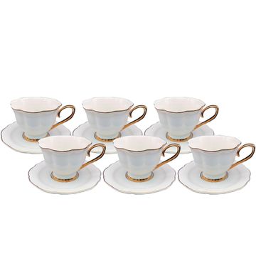 Conjunto de Xícaras Com Píres para Chá Com 6 Unidades De 240ml em Porcelana Filet Gold New Bone