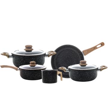 Conjunto de Panelas Antiaderente Com 5 Unidades Preto Com Revestimento Cerâmico Em Alumínio